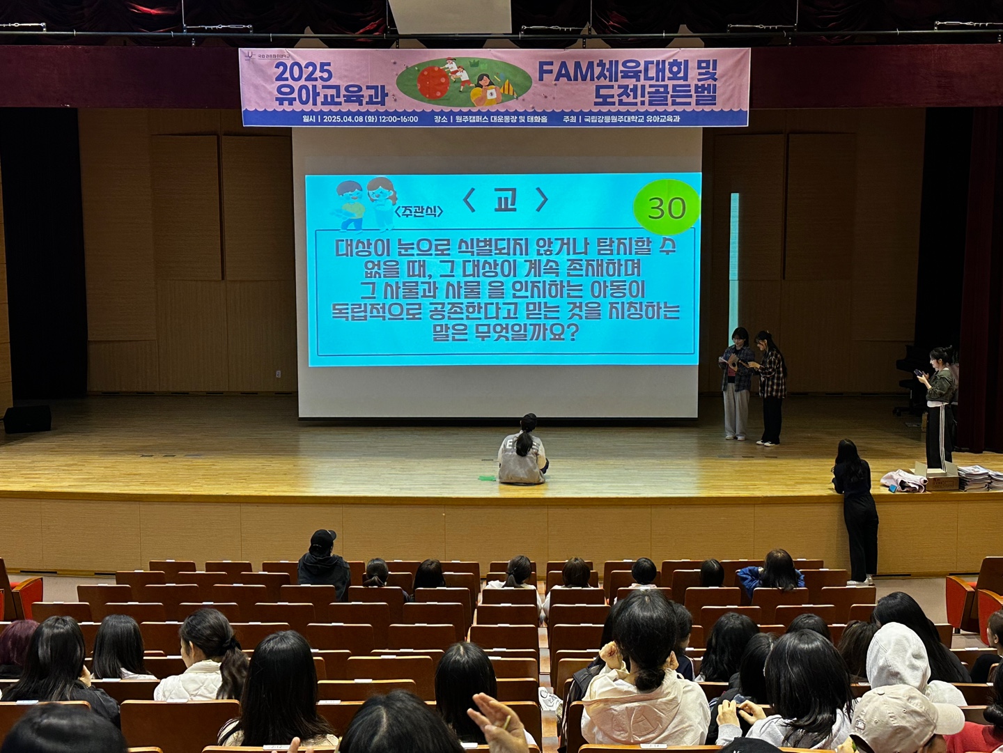 유아교육과에서는 4월 8일(화) FAM체육대회 및 도전!골든벨을 원주캠퍼스 대운동장 및 태화홀에서 개최하였다.
