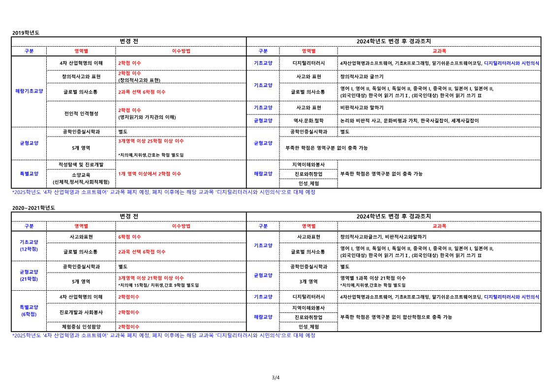 2024학년도 교육과정 개편에 따른 교양 경과조치 안내