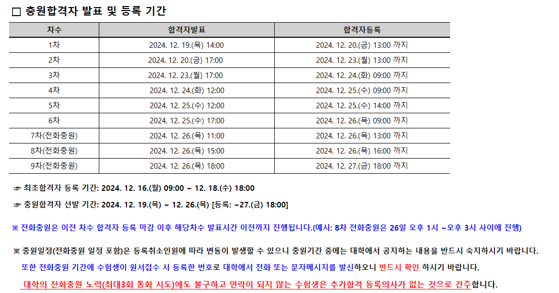 ▶ 합격자 조회 및 등록 페이지(예비번호 확인 가능)