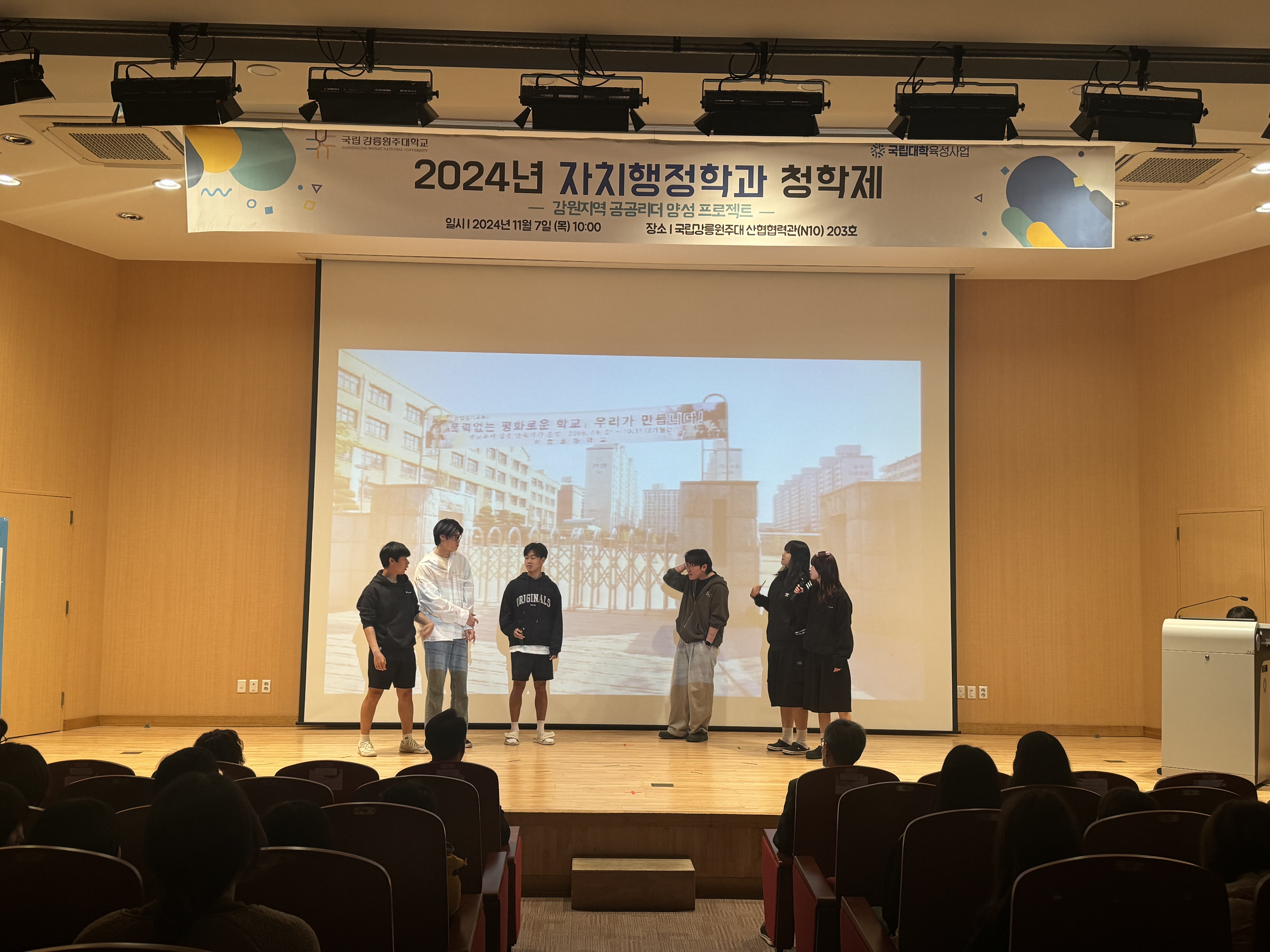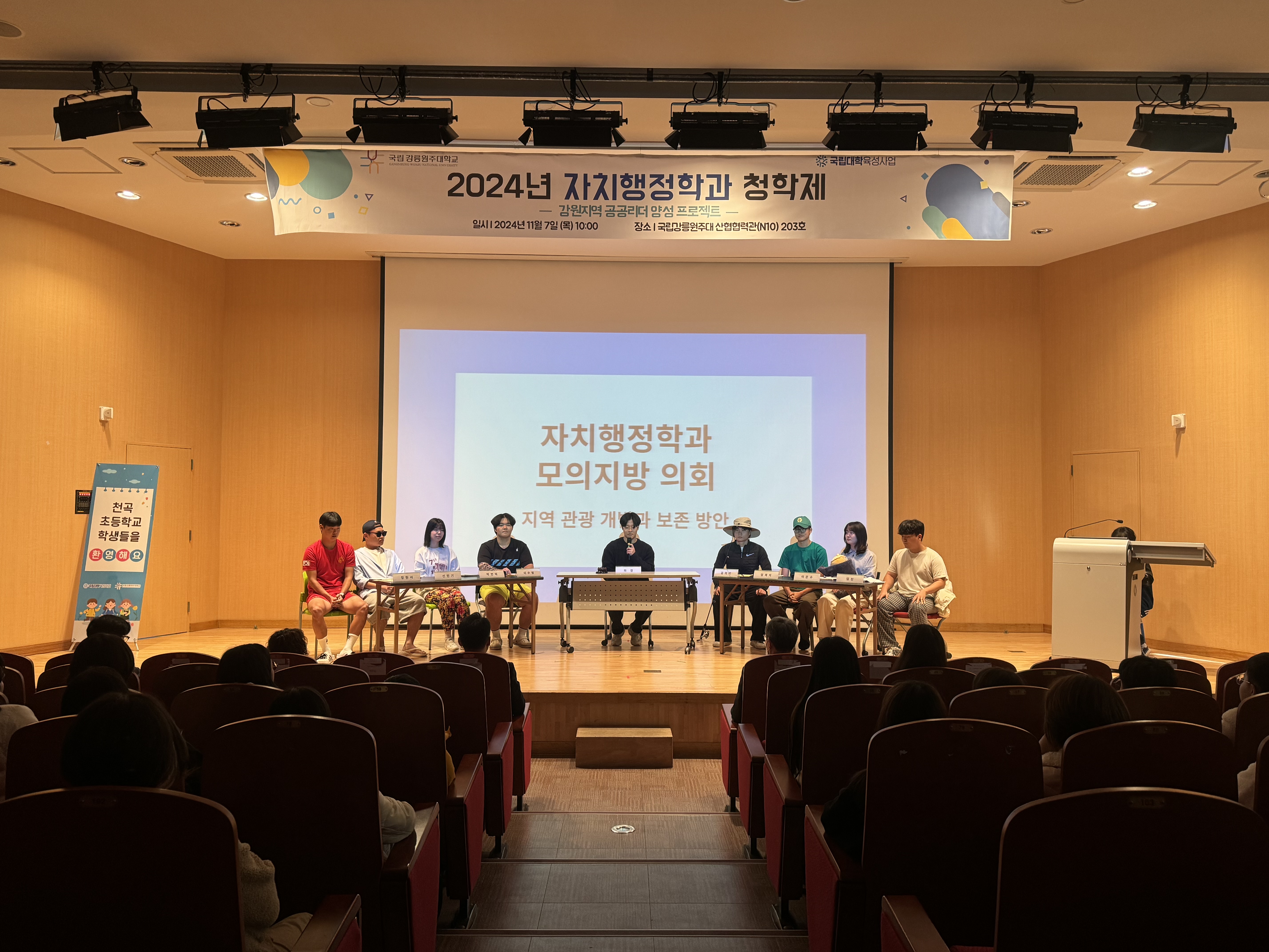 1부에서는 자치행정학과 학생들이 강원도 내 주요 지역사회 이슈를 다룬 모의지방의회 연극을 공연했다