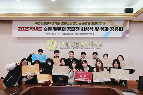 지역협력과는 12월 9일(화) 오전 10시, 강릉캠퍼스 대학본부(C6) 220호 대회의실에서 ‘2025학년도 국립강릉원주대학교 숏폼 챌린지 공모전 시상식 및 성과 공유회’를 개최했다.