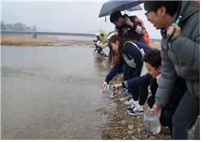 한국수산자원관리공단 양양연어사업소에서 개최하는 2015년 어린연어 방류행사에 학부생들이 참여하였다.