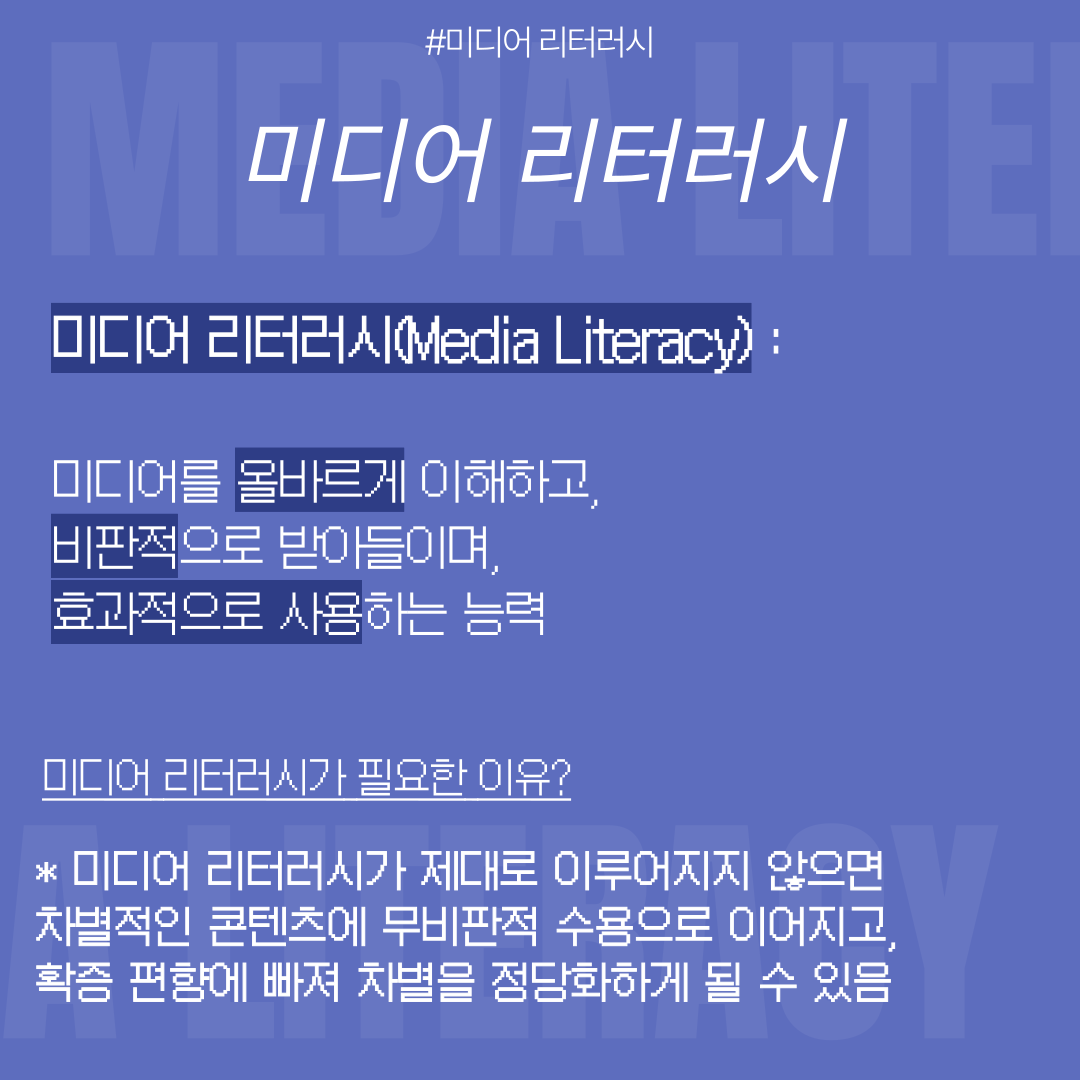 올바른 미디어 리터러시는 우리 사회에 존재하는 차별과 편견을 인식하고 정확하게 이해하는 데 도움을 주며, 나아가 다양성과 공존의 가치를 실현하는 데 중요한 역할을 합니다.
