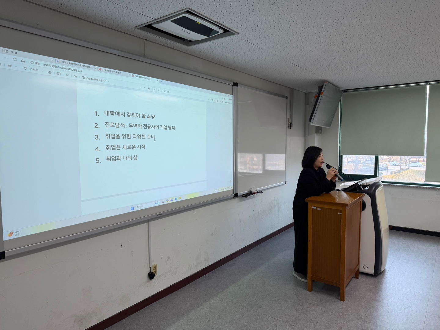 무역학과 재학생들을 위해 대학생활과 나의 길이라는 주제로 특강을 진행하셨습니다.