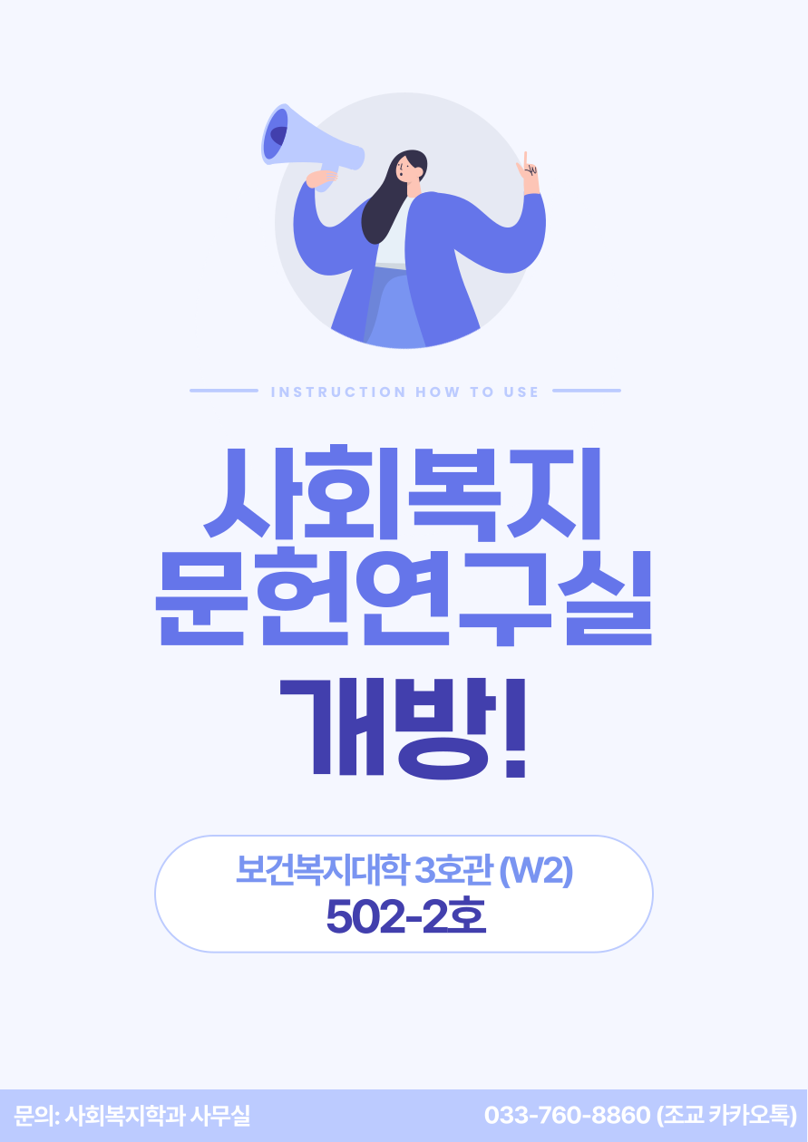 사회복지문헌연구실(W2,502-2호) 개방 및 이용안내