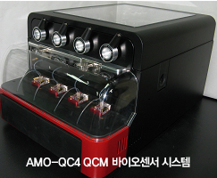 - Quartz crystal microbalance(QCM) 바이오센서를 연구하여 (주)아모라이프사이언스와 함께 QCM 바이오센서 시스템을 개발하였습니다. 이 QCM 바이오센서는 센서 칩 표면에 물질이 결합하면 수정 박막의 진동이 변하는 현상을 이용하여 최저 1 나노그램까지 측정할 수 있으며, 병원균, 질병 마커 단백질, 환경오염 물질 등을 검사하는 데 사용할 수 있습니다.