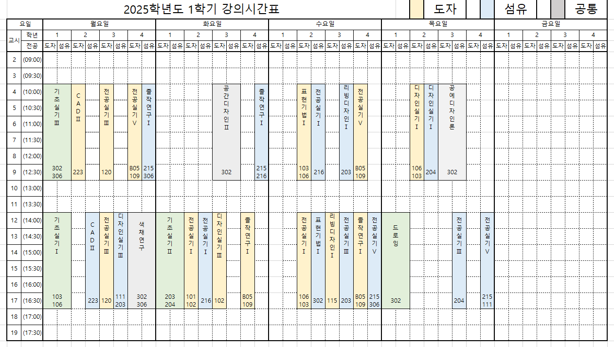 2025학년도 1학기 전공시간표 안내