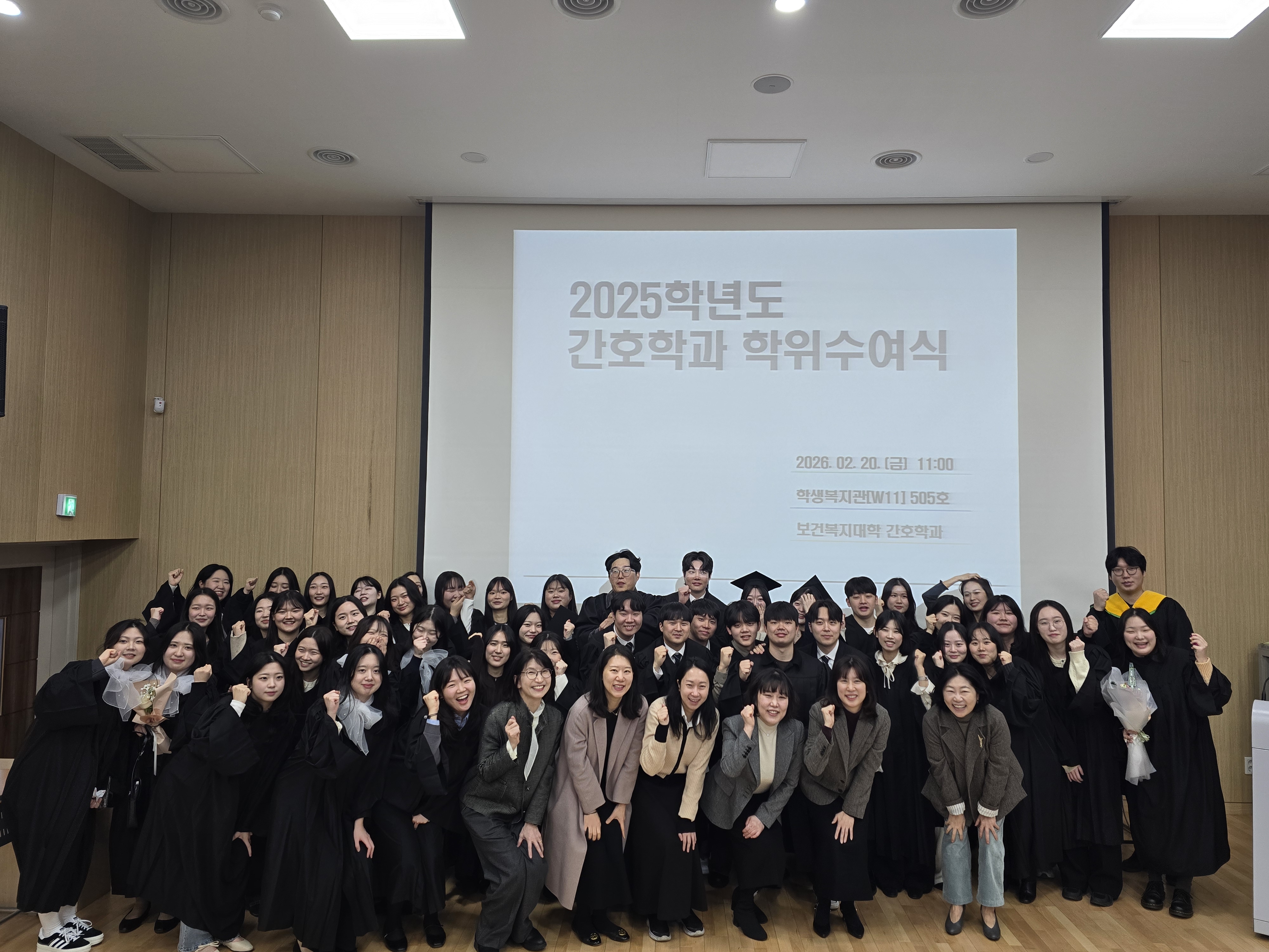 fnctId=bbs,fnctNo=839 2025학년도 전기 간호학과 학위수여식 글번호 327649 작성일 2026.02.21 작성자 원민정 조회수 359 2025학년도 전기 간호학과 학위수여식 2026. 2. 20.(금) 11시 학생복지관(W11) 505호 첨부파일 20260220_112824.jpg 20260220_112551.jpg