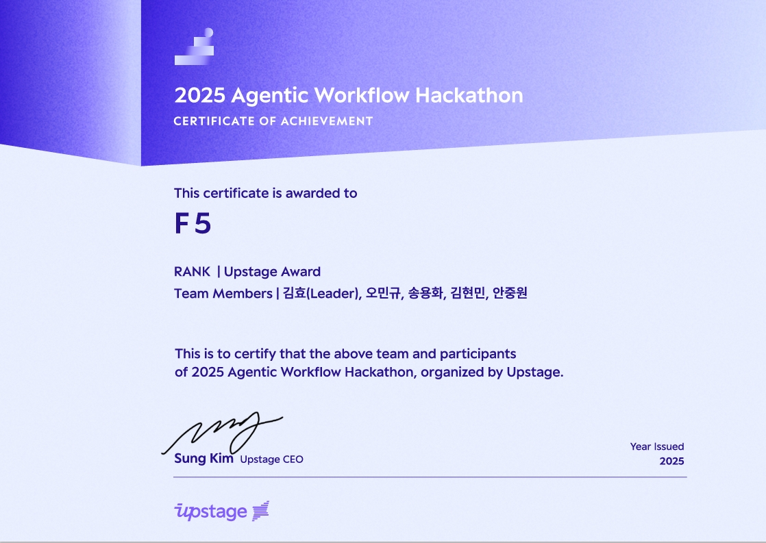 2025 Agentic Workflow Hackathon 우수상·특별상 수상