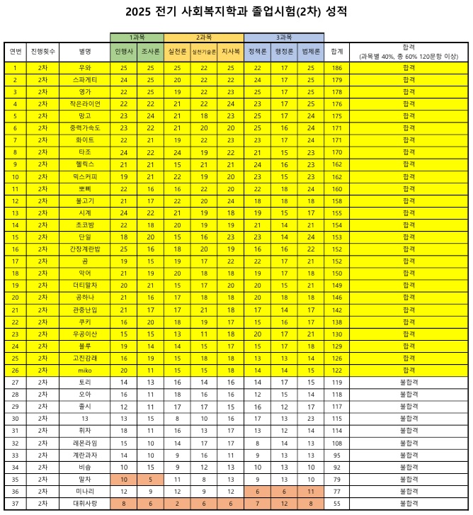 2025학년도 전기 졸업시험(2차) 결과 안내